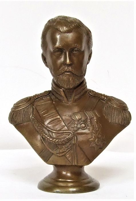 AEK – Skulptur, Büste des letzten Zaren Russlands, Nikolaus II. – markiert mit AEK – Bronze – Anfang des 20. Jahrhunderts