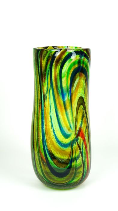 Afro Celotto - Murano - Mehrfarbige grüne Pulegoso-Vase - signiert 1/1 - (cm 50) - (kg 8)
