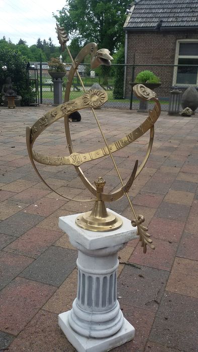 Armillar-Sonnenuhr mit Tierkreis - Messing - kürzlich