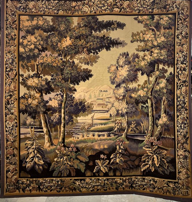Aubusson – Magnifique Tapisserie Verdure d’Aubusson – Louis XV-Stil – Seide, Wolle – 19. Jahrhundert