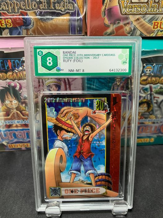 Bandai – Graded Card One piece – luffy rufy shanks promo 20th anniversary card – manga with stand