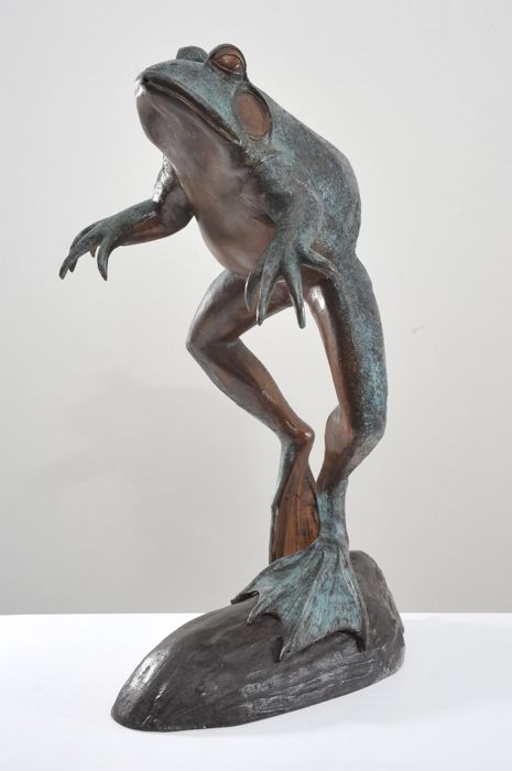 Brunnen, Großer springender Frosch - 65 cm. - Bronze (patiniert) - kürzlich