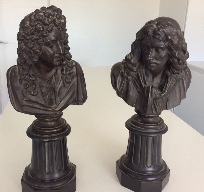 Büste, Skulptur, Racine und Moliere (2) – Bronze (patiniert) – Zweite Hälfte des 19. Jahrhunderts