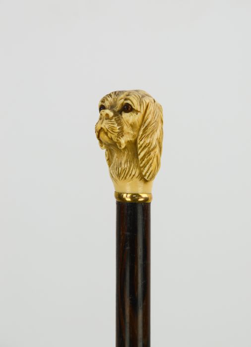 Cavalier King Ivory Walking Stick - Ebenholz, Elfenbein, Messing, Horn - Erste Hälfte des 19. Jahrhunderts