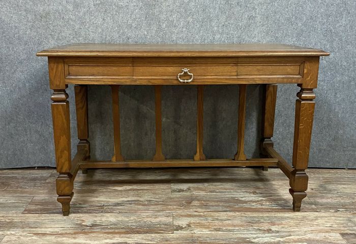 Flacher Lehrer oder Verwaltungsschalter – Eiche – Um 1900