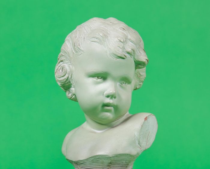 Gesigneerd Gobet – Skulptur, Kopf eines Kindes nach Art von François Duquesnoy – Terrakotta – Anfang des 20. Jahrhunderts