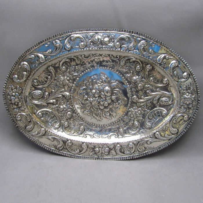 Großes dekoratives Tablett – Silber, Gesetz 925 – 917 gr. de plata – Spanien – Ende des 18. Jahrhunderts