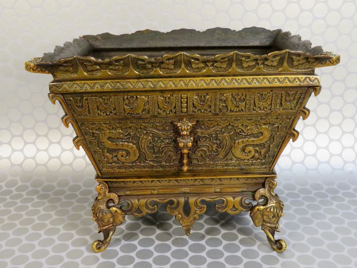 Jardinière, Orientalismus - Pflanzgefäß mit Elefanten - Bronze - Ende des 19. Jahrhunderts