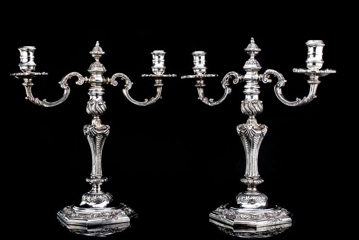 Kronleuchter, Vintage Paar Kandelaber (2) - .925 Silber - LJW - Großbritannien - 1970er Jahre
