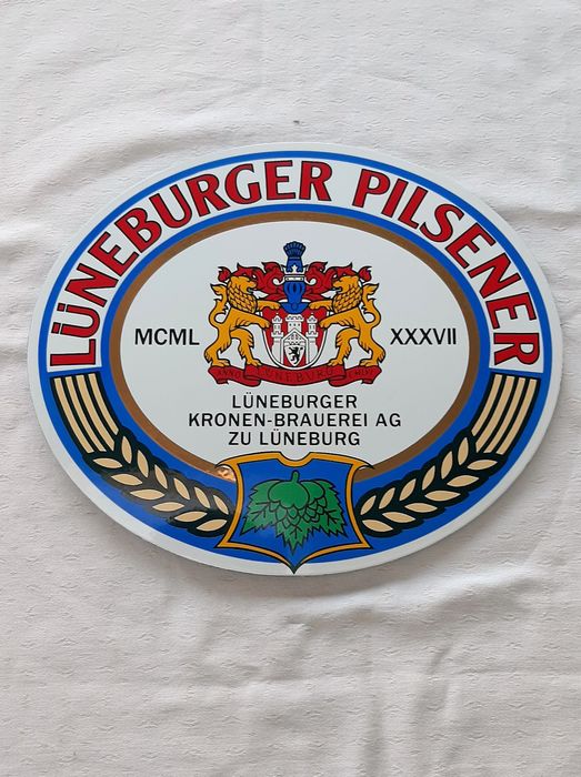 Lüneburger Pilsener Emaille Bier Werbeschild