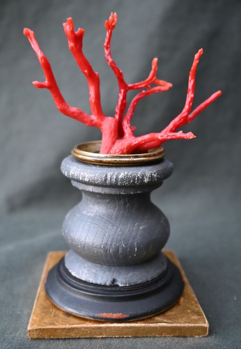 Mediterraner roter Korallenständer, Kuriositätenschrank, Kunstkammer - Corallium rubrum - Holz, Vergoldet - um 1900