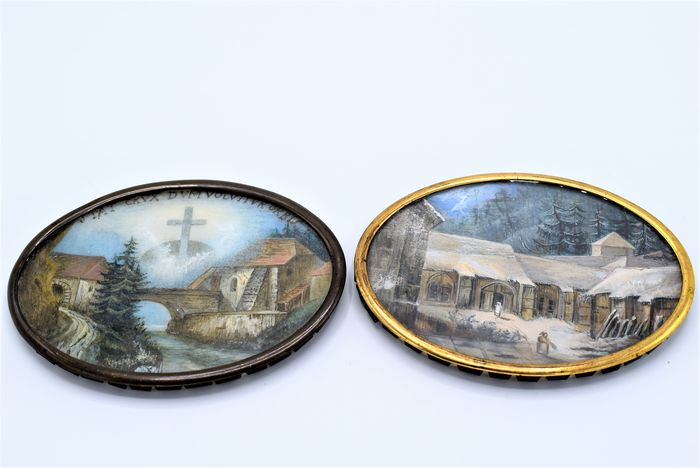 Miniatur eine Szene des Lebens in einem Dorf und Die Welt verändert sich und das Kreuz bleibt (2) - Marmor - Mitte des 19. Jahrhunderts