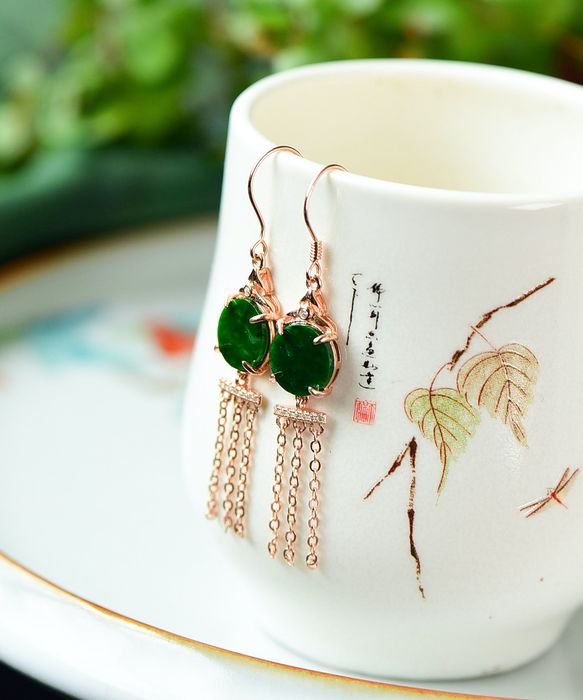 Ohrringe – KEIN RESERVEPREIS – Natürlicher Jadeit (Typ A) – Silber – Certified – China – 21. Jahrhundert