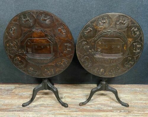 Paar getönte Naturholz-Säulentische, die Noahs Bogen vorher und nachher darstellen – Holz – Um 1850