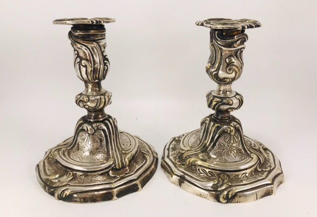 Paar Kerzenhalter, Kerzenhalter (2) – Louis XV – Bronze (versilbert) – 19. Jahrhundert