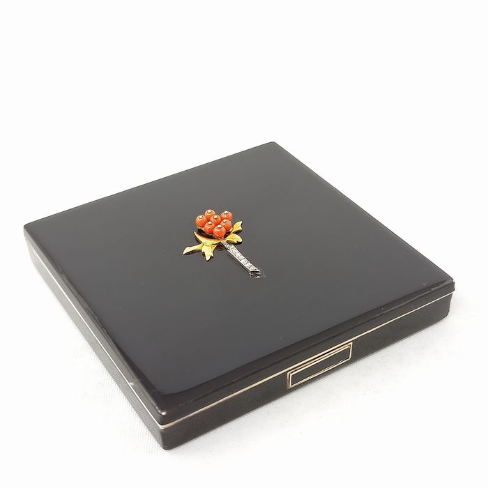 Puderdose, Cartier kompakt - .800 Silber, Lack - Gold - Diamanten - Koralle - Cartier - Frankreich - Ende des 20. Jahrhunderts