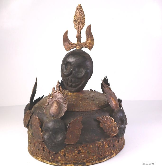 Ritualhut, oft beim Cham-Tanz getragen - Kupfergewebe - Nepal - Zweite Hälfte des 20. Jahrhunderts