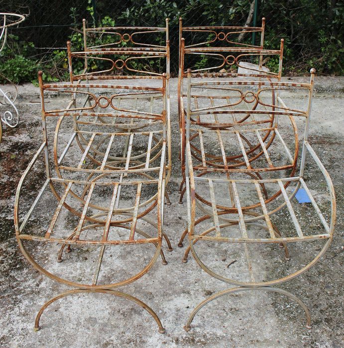 sechs schmiedeeiserne Sessel (6) - Eisen (geschmiedet) - Zweite Hälfte des 20. Jahrhunderts
