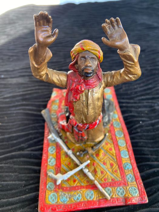 Skulptur, Orientalische Figur auf Teppich legt seine Arme nieder - Bergman Foundry-Stil (1) - Bronze (kaltlackiert) - Erste Hälfte des 20. Jahrhunderts