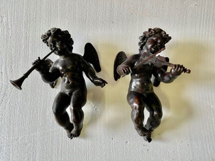 Skulptur, Paar Putten aus Bronze zum Aufhängen – 45 cm (2) – Bronze – 20. Jahrhundert