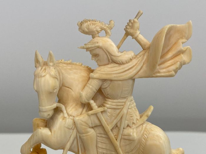 Skulptur, Saint George und der Drache + Zertifikat – Elfenbein, Holz – Um 1890