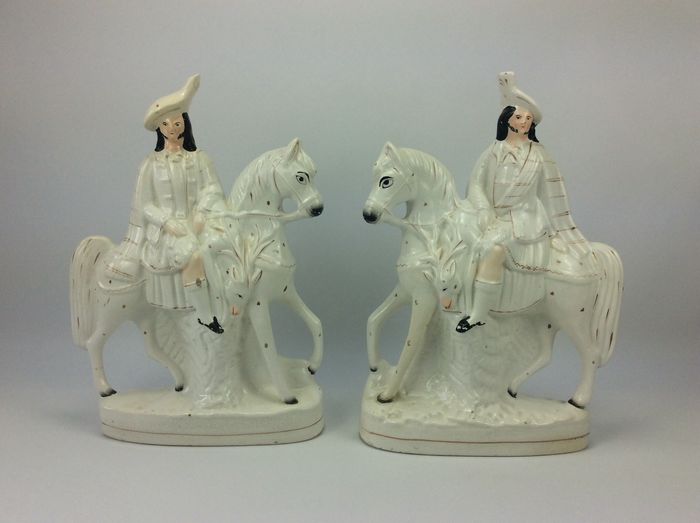 Staffordshire - Satz schottische Reiter zu Pferd - Historismus - Töpferware